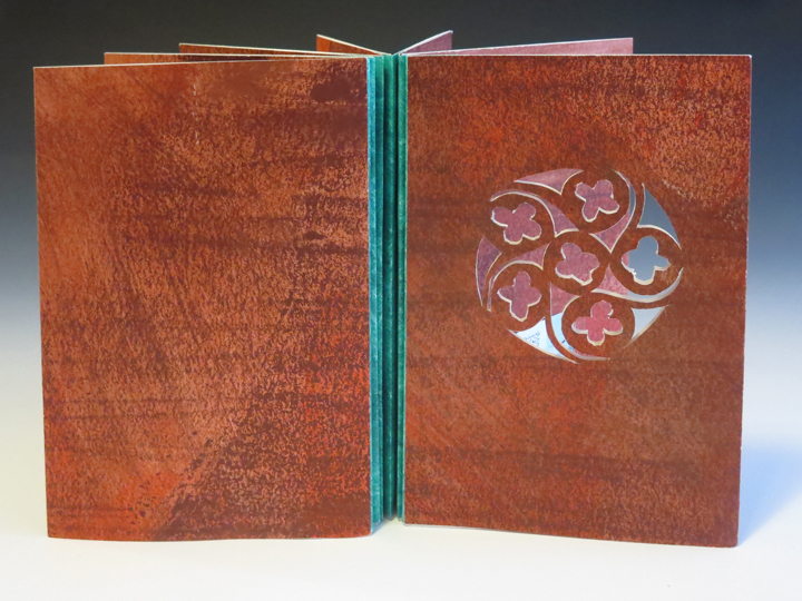 An Appetite for Egress was the first book I made in Venice. The structure uses Hedi Kyle’s storage book but with thin binder’s board instead of cardstock. This material creates solid pages that clatter as you page through the book in a way reminiscent of foot-falls. The text evolved from reflections on Joseph Brodsky’s Watermark related to time, water and how so much of walking in Venice is about leaving the past behind.