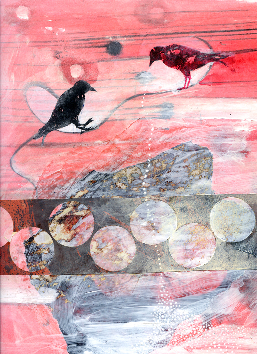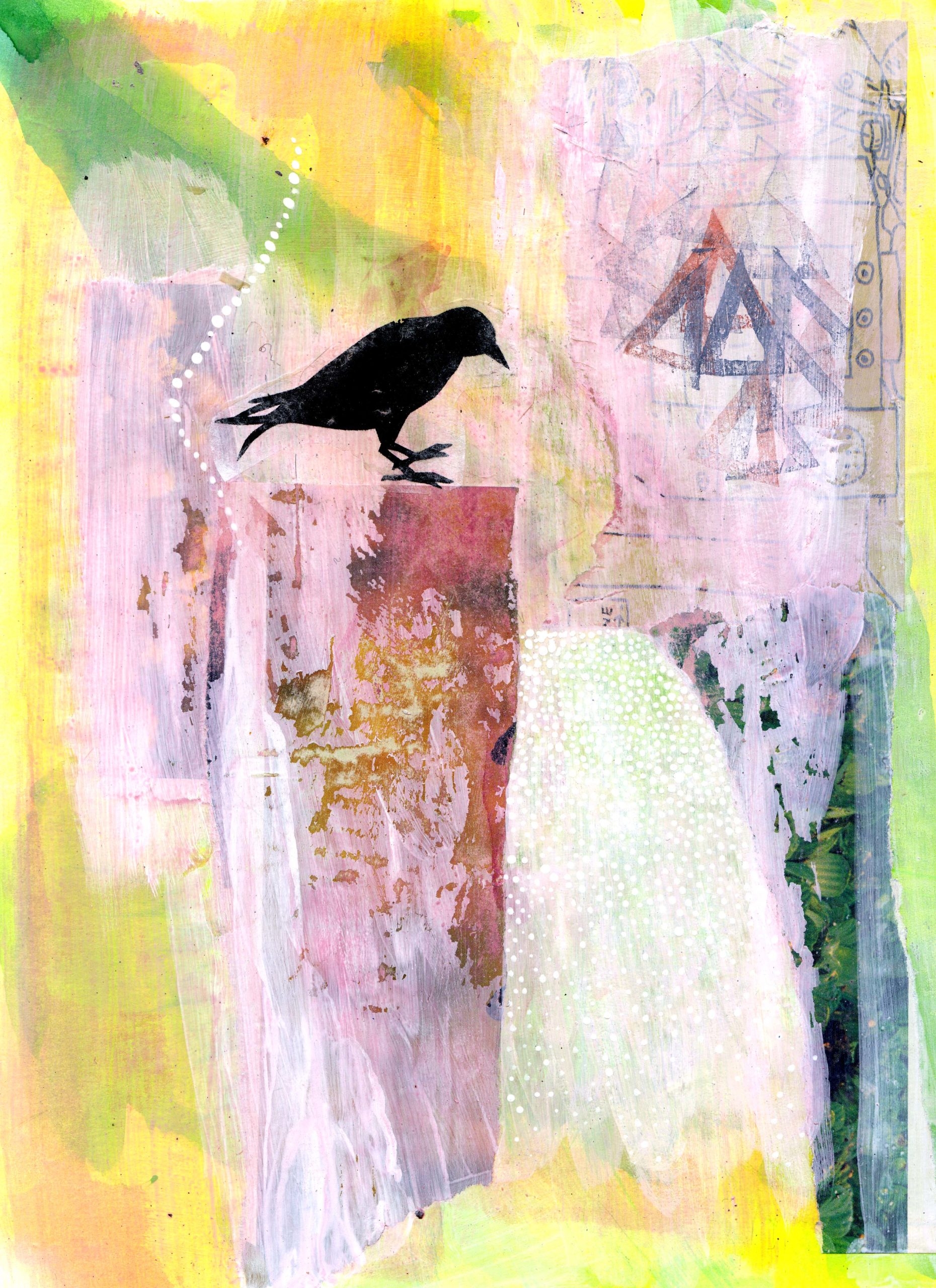 Observing the hidden natural world grounds my work. I look for patterns, textures, and tiny stories in my surroundings, bringing them into my books, drawings, collages, paintings or sculptures. What looks like birds at battle, figurative trees or colorful collages are part of my own metaphorical and symbolic commentary on my place in the world.