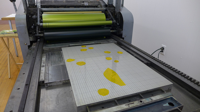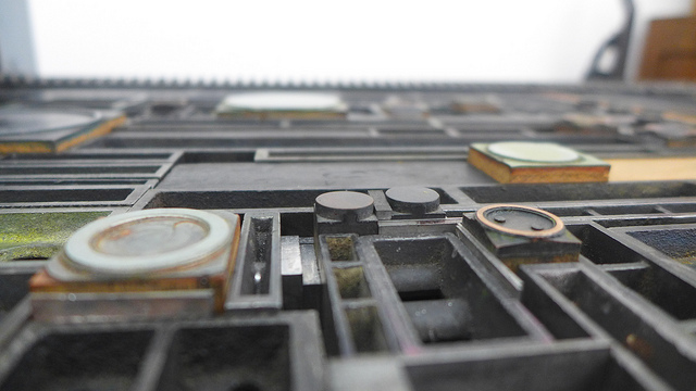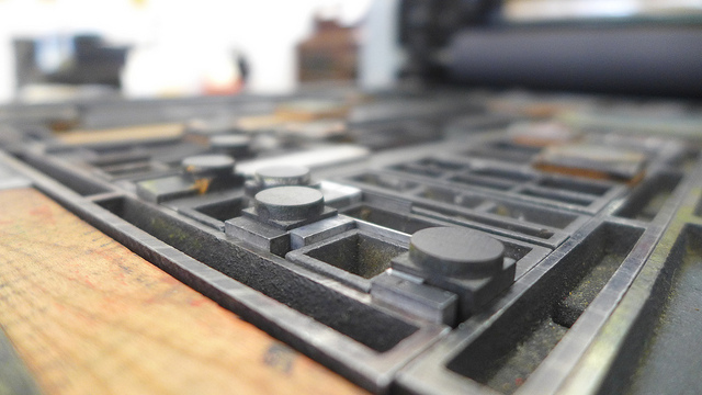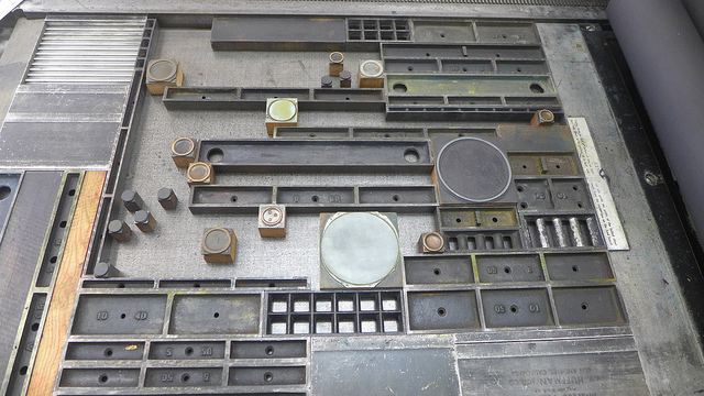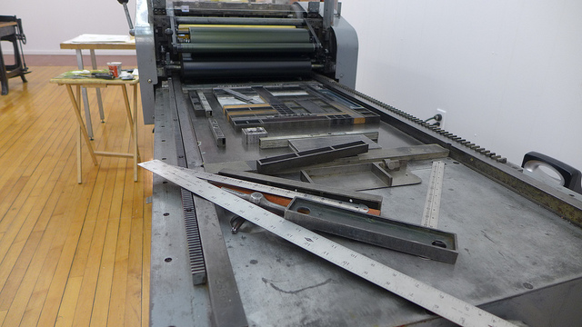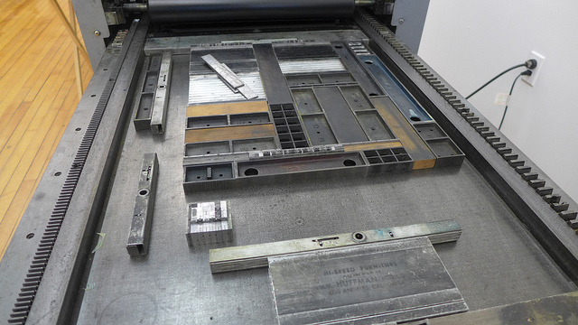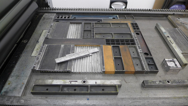 Perhaps you saw my earlier post that got into a bit of the preliminary process. These new images take you through the printing, from the first lock-ups to the last. I am grateful to Antoine, the PRESS BHIP 2013 intern for his help in solving the lock-up “puzzle” and for taking these pictures. You can see more pics from PRESS at our Flickr page.