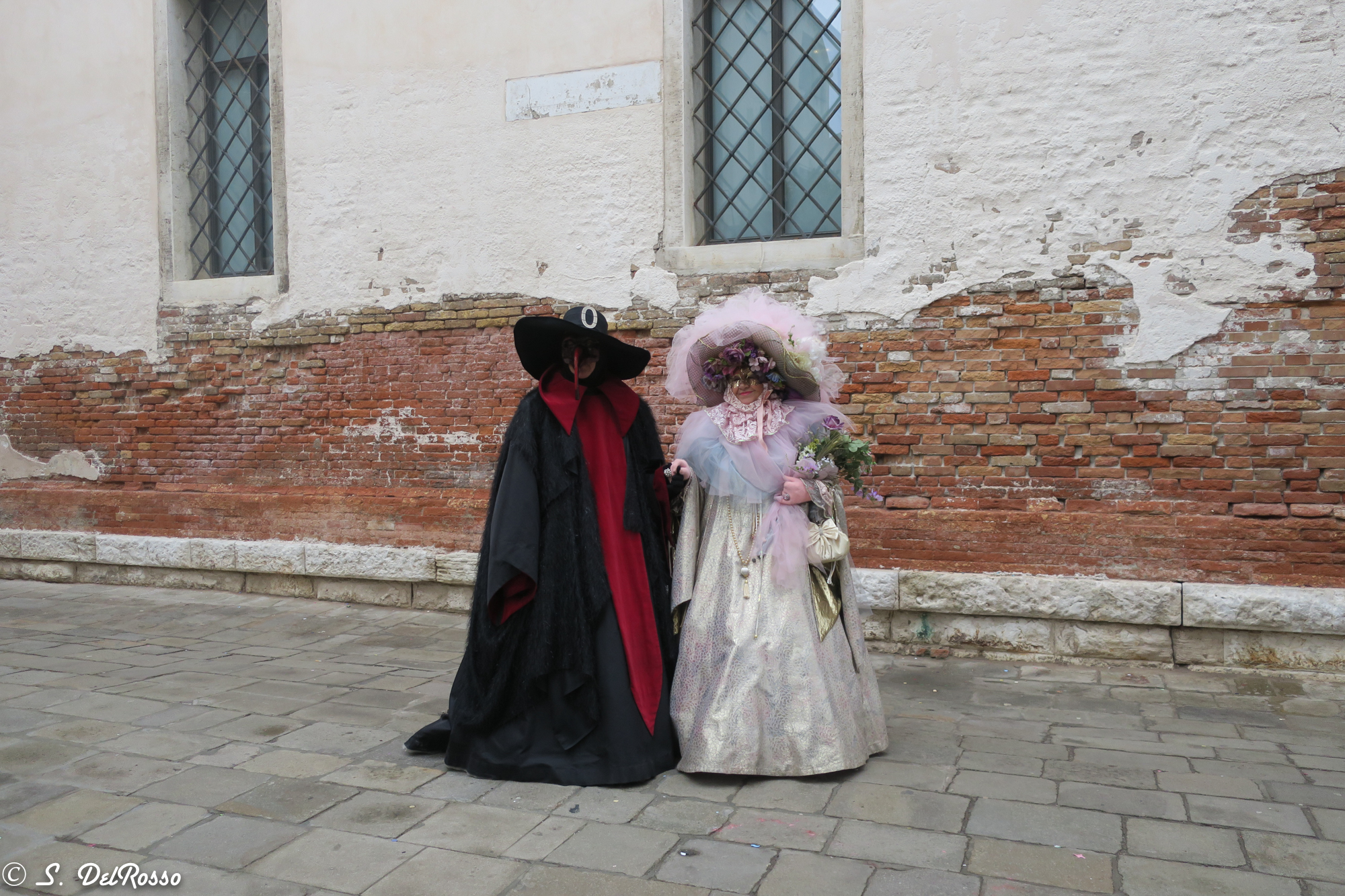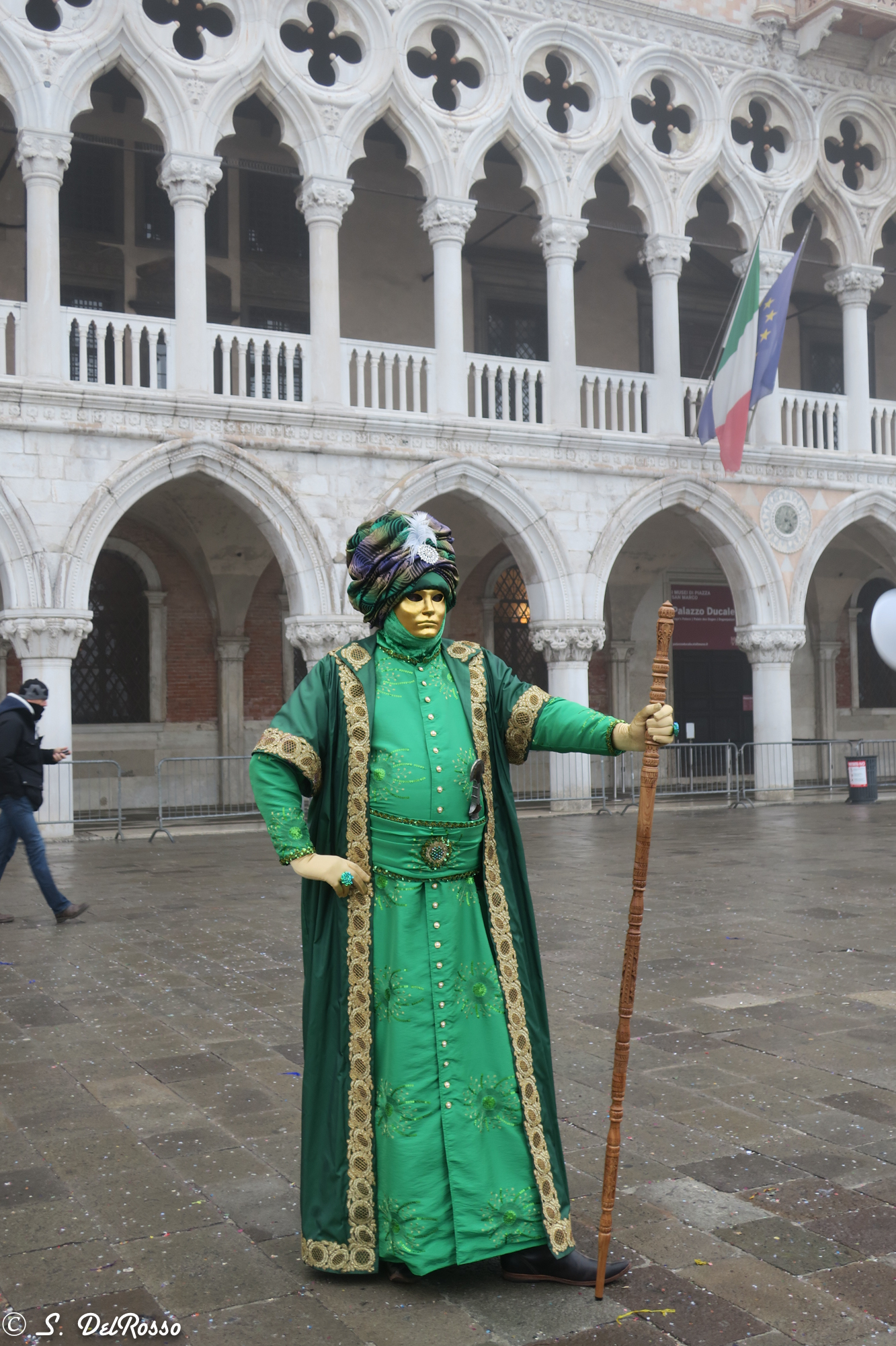 - And another moment, today on my way to yoga there were three people, I think men, in lovely period costumes with elements of nature. A moss and flower covered staff and massive amounts of peacock feathers coming out of their masks. It was so pretty and they were moving gracefully through the crowd at the base of the Rialto while some string instruments serenade them.