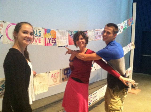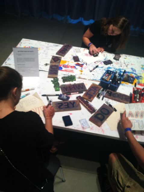 Spending time with the Beatitudes work as well as watching all the primary footage of Corita giving talks and working with her students highlighted the viewing of this show. But, I also brought my nieces and nephew with me. They immediately went to the activity that greeted us in the entry way. Perhaps one day I will write a critical review of the exhibit. Stay tuned.