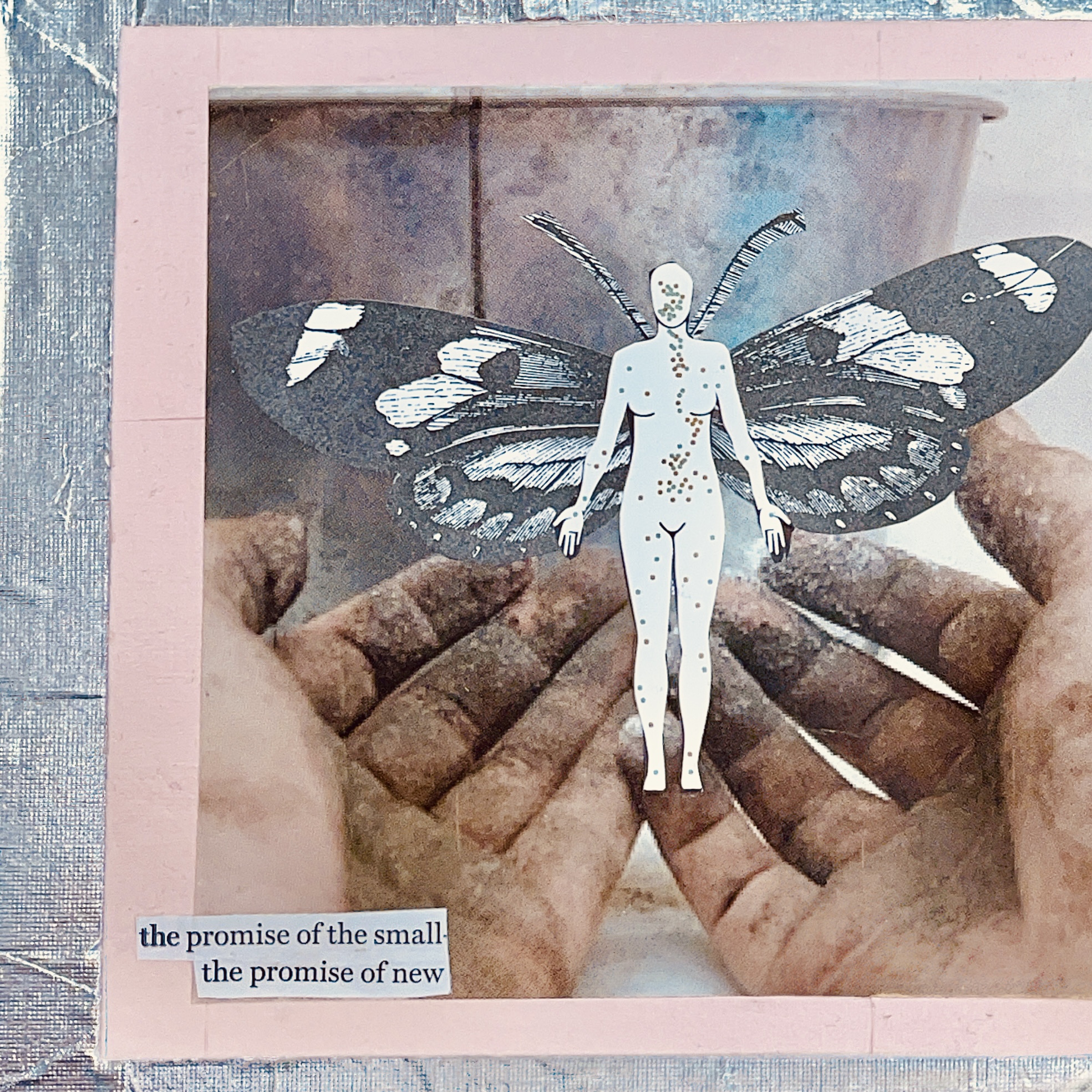 What I've noticed over the years, is that the first few collages of the month are a little forced, me trying to "make something that's cohesive" instead of listening to the materials and make what wants to be made. That's what happened today when I made this one.