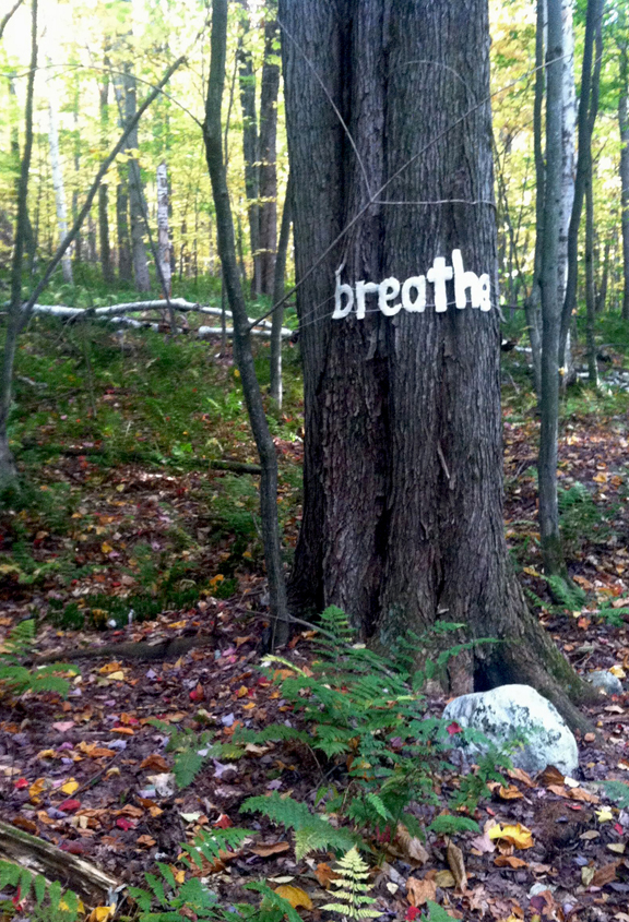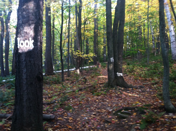 As I contemplated where to hang the words, I considered a trail near me that leads to the Cheshire Cobbles. This incredible trail leads to an outcropping of rocks from which one can see the entire Greylock Range. I also thought about trails in my own backyard, the only problem with that, is that only I would see it.