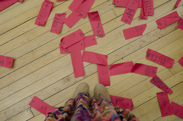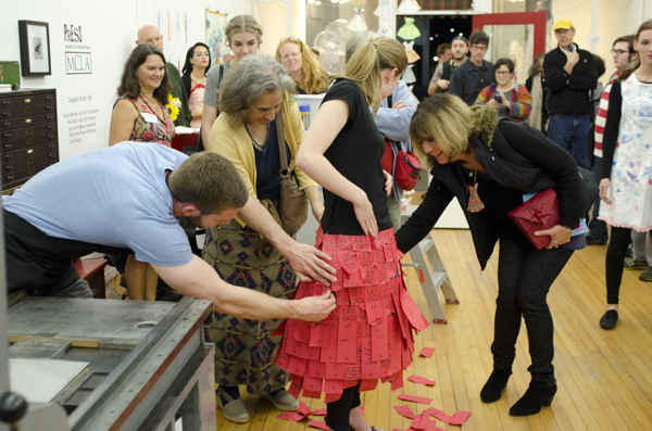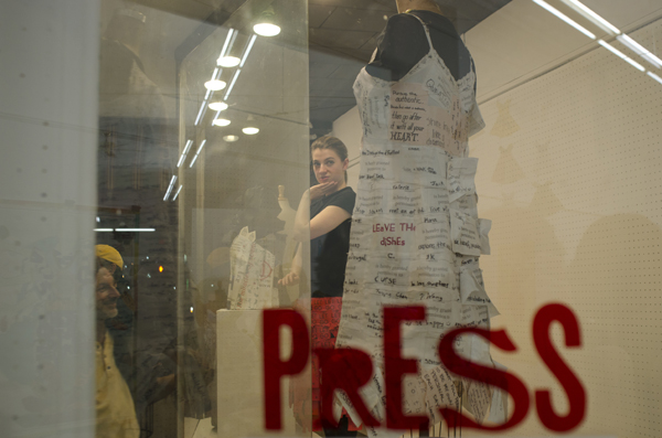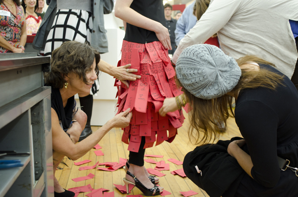 What an excellent project…start to finish. There is something about all those people’s voices in the skirt and then the audience taking them that I really love. Maybe the Let Go dress and the Permission Slip could take all the other dresses on tour….we’d have massive trains of release and permission by the time it came back to PRESS. xoxo S