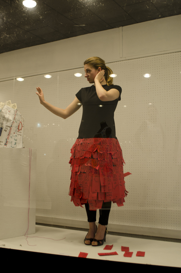 During the opening, the various “let go” statements were torn off the dress and left to the world, as a reminder of how sometimes we need someone to help us let go, as well as that it is sometimes just really hard to let go…