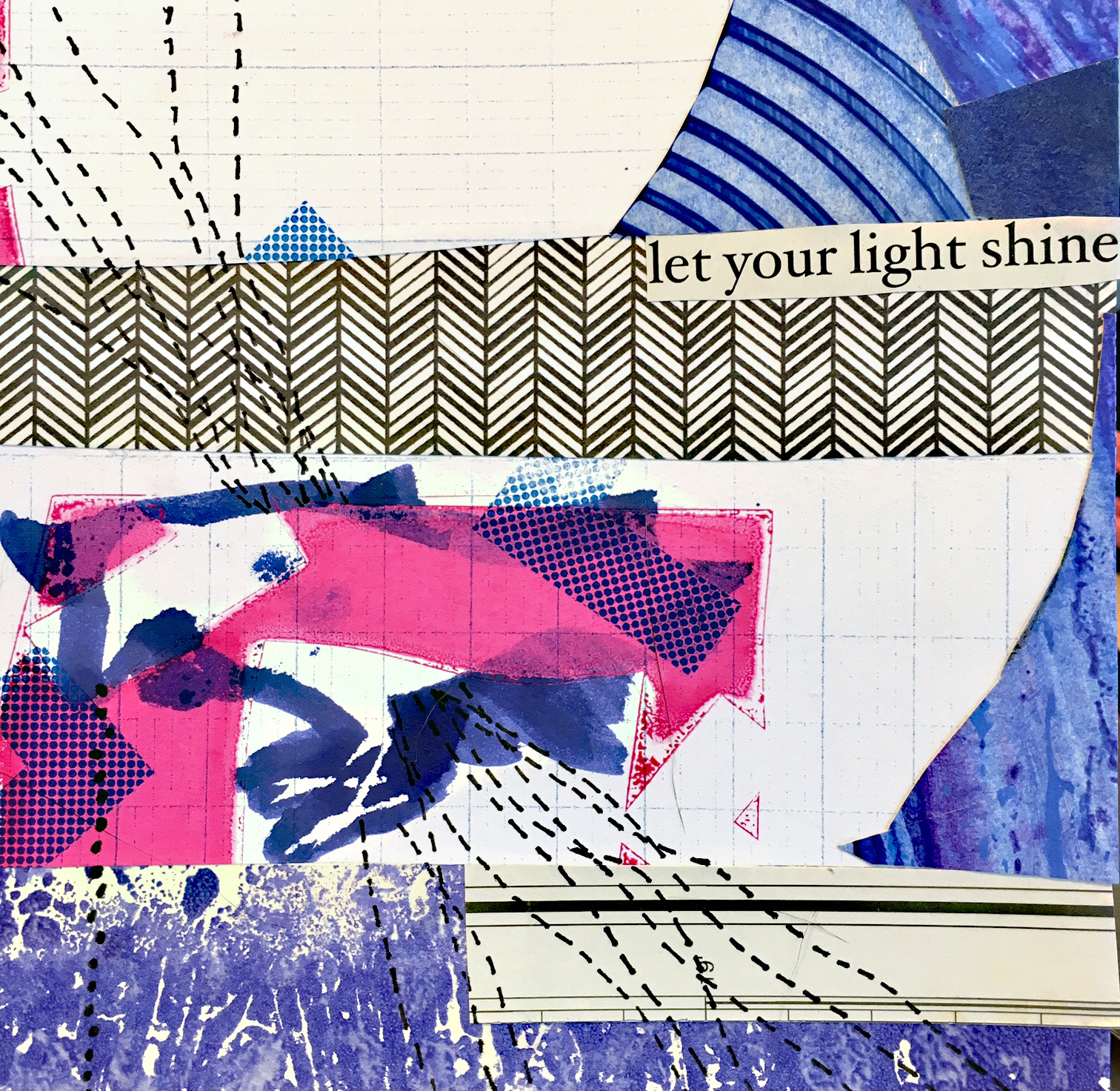 - Using black, white and two colors (I used blue and pink), compose a collage that has minute elements of a puzzle.