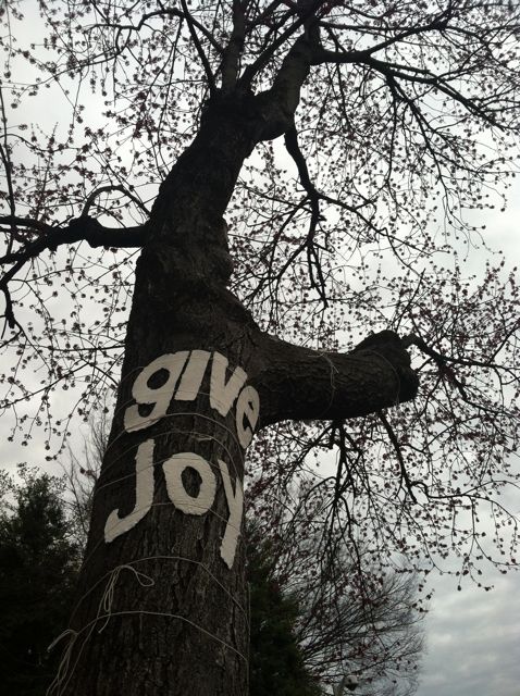 My paper words project was chosen to be part of this special installation project and as part of it, I made eight new words with the help of three of my students from MCLA. Here are some pictures of the installation. I will be hanging the words again in two weeks as part of Art Along the River, a project of the Hoosic River Watershed Association in Williamstown, the weekend of April 18-19.