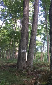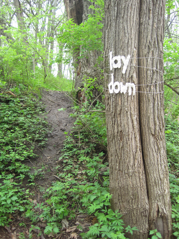 In 2016, I expanded this project through a collaboration with poet Holly Wren Spaulding, making some of her haiku-like poems into words that guide a walker along a path. We call the project ‘Here Stands’. A stand is a contiguous area that contains a number of trees. ‘Here Stands’ is an outdoor poem and a poetic declaration: trees that stand for something.