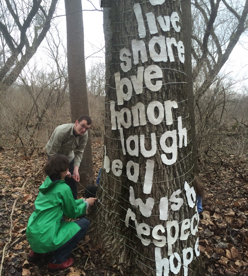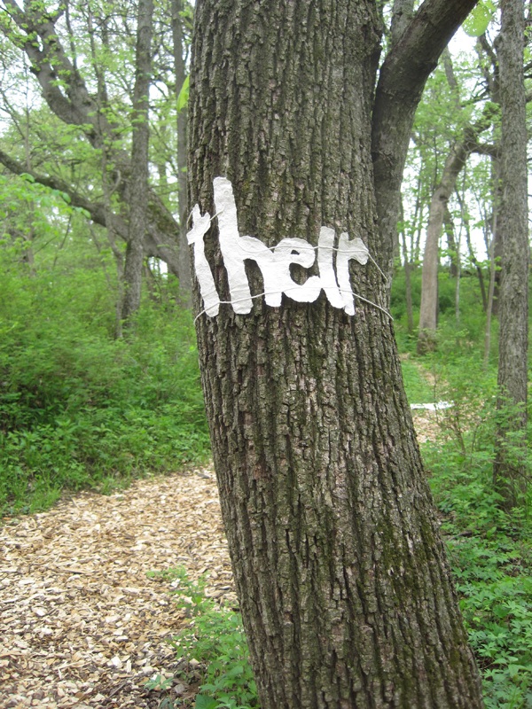 In honor of Earth Day 2005, I installed a temporary work of art in Rittenhouse Square, Philadelphia. Paper Words call attention to trees, and inspire pause, reflection and consideration of these beings. The chosen words focused on the positive aspects of trees as a reminder of how important they are for our survival.