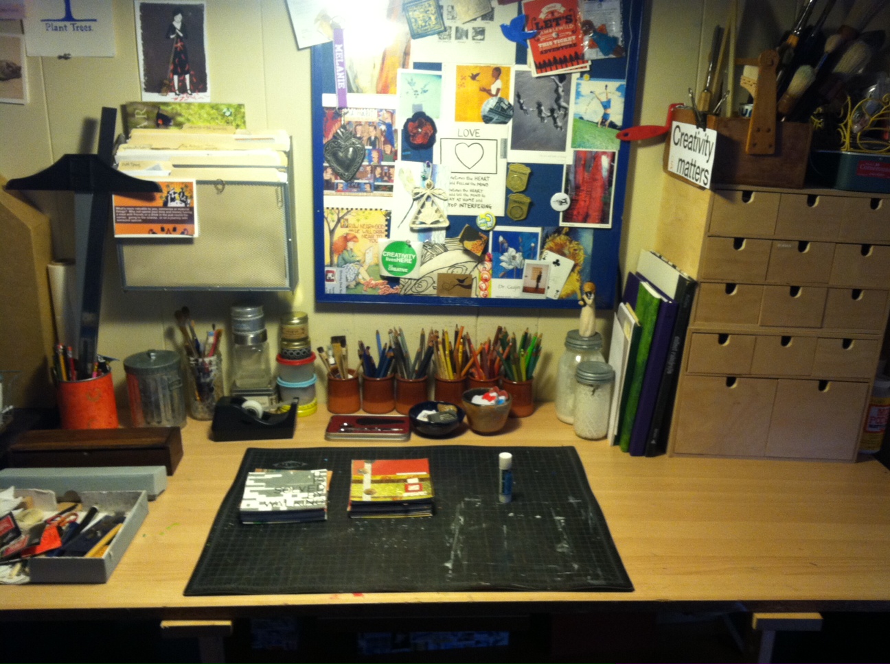 To prepare, I have cleaned my studio, accessing what supplies I need. See that tiny little pathetic glue stick.