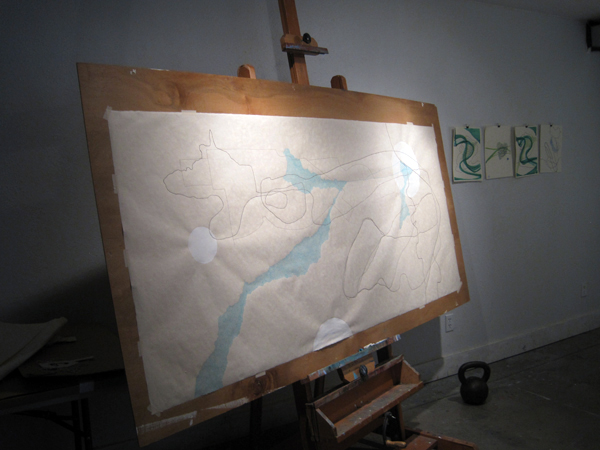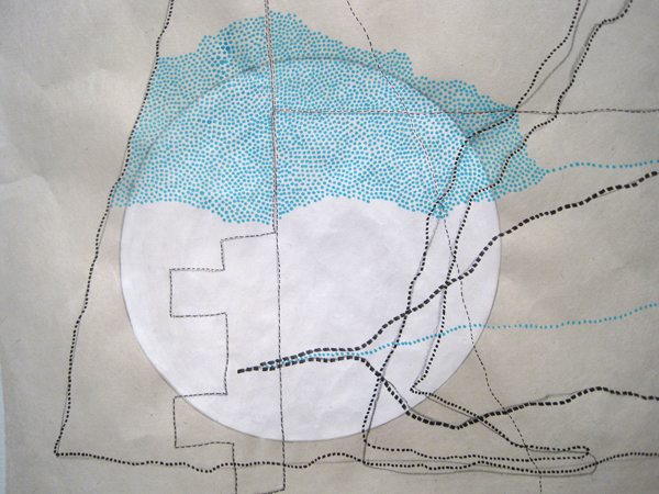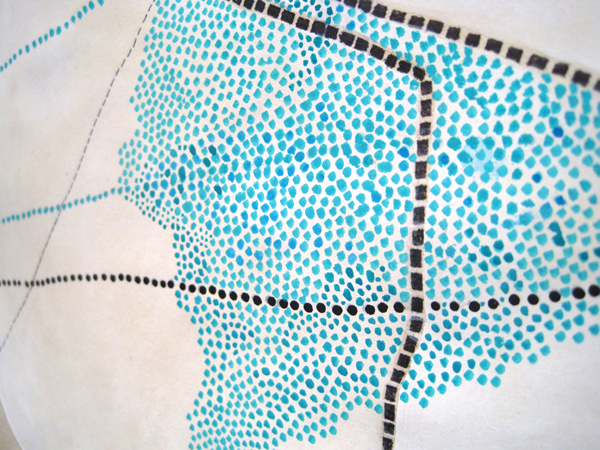 What fun! I started making these great drawings that pick-up on some elements of the artist books that I created in Venice. And the best part–they WILL be part of the exhibit. I need to make seven small ones (18×48 inches), finish the large one (4×8 feet) and make a second large one (4×4 feet). AND, I have to make 300 three-dimensional dots. Notice the common element…lots of little dots. Lots of them. Endless dots. I dream about them. They are all I want to make right now. Thankfully. I don’t know why, but I love them.