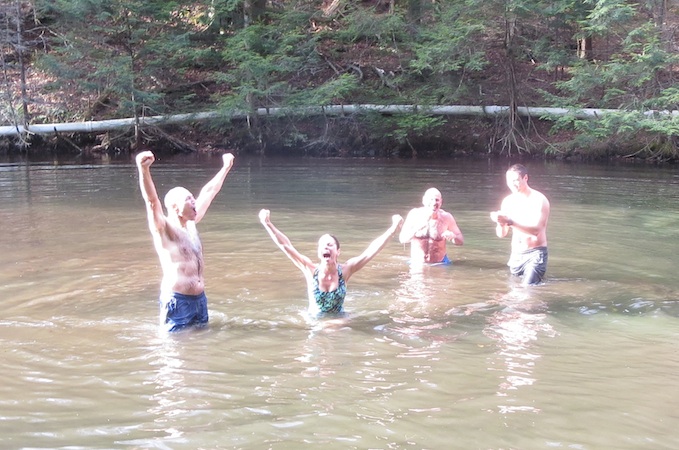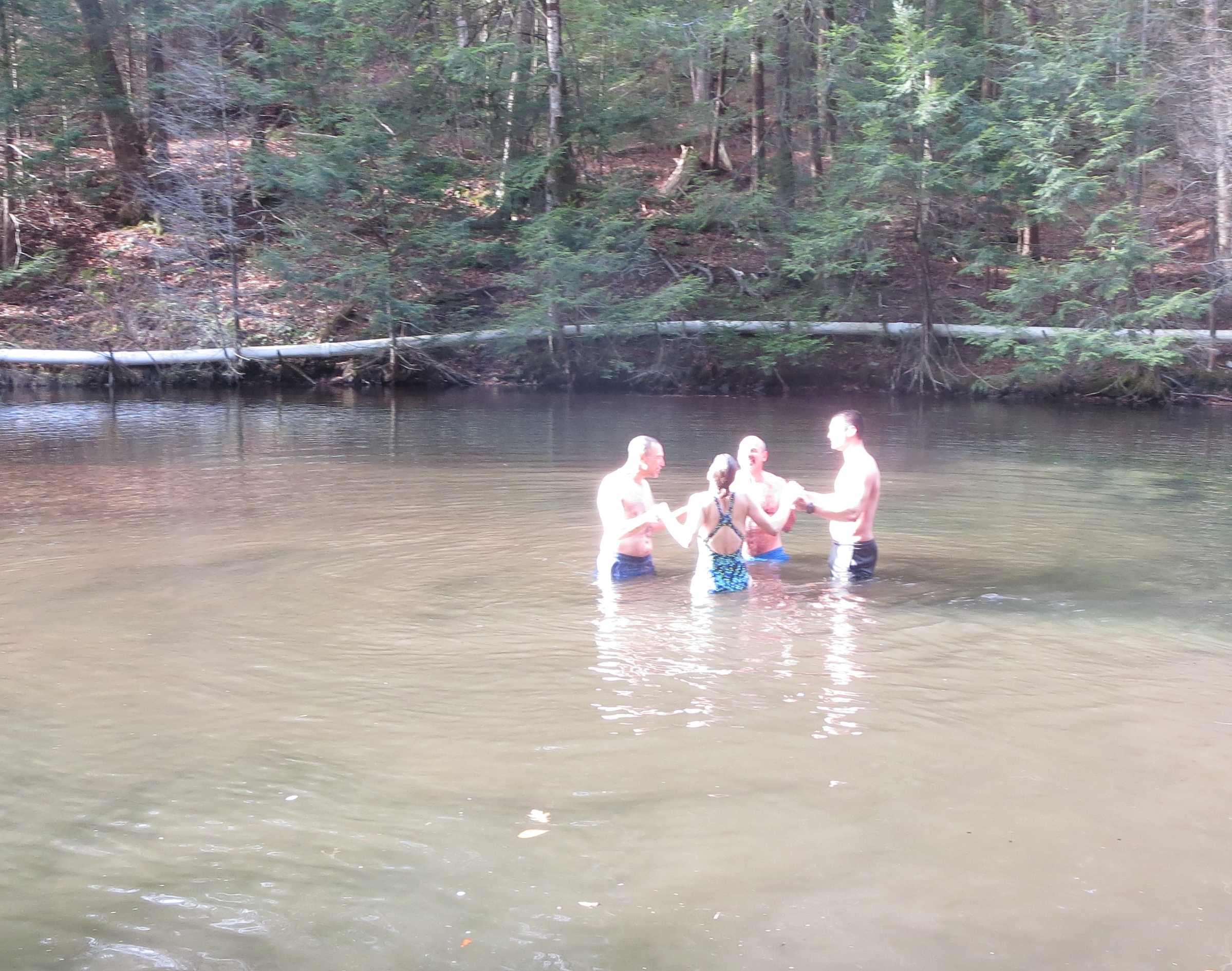 “Alice laughed. ‘There’s no use trying,’ she said. ‘One can’t believe impossible things.’I daresay you haven’t had much practice,’ said the Queen. ‘When I was your age, I always did it for half-an-hour a day. Why, sometimes I’ve believed as many as six impossible things before breakfast. “This year I’ve done many seemingly impossible, unfathomable things. And because of this, I know I am going to be able to do many more. This past Friday, 20 of us trooped through our woods to an old reservoir. For me and Doug, this is a sacred space. We come here to honor difficult moments in our lives and to celebrate joyous ones. And the day after Thanksgiving? We come to immerse ourselves into the fresh mountain water. I had never done it before. Last year there was at least 12 inches of snow and a layer of ice on the water. The previous year, well, let’s just say my relationship with cold water is worse than my relationship with time.