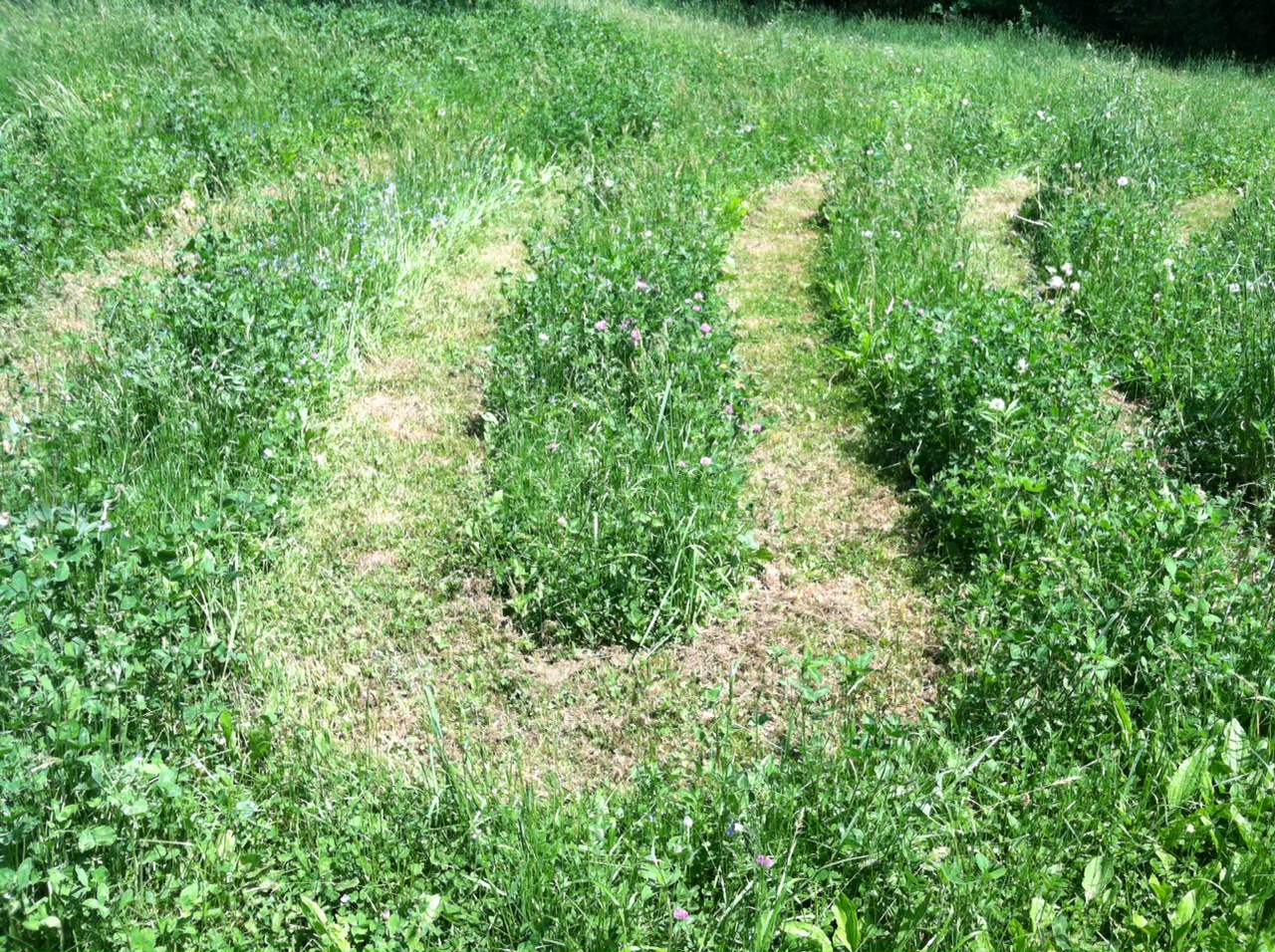 I will forever be grateful to Hew in New Brunswick, Canada for posting how he mowed a labyrinth into his lawn. I followed his directions and pretty much had a Chartes pattern labyrinth mowed in my meadow in less than five hours.