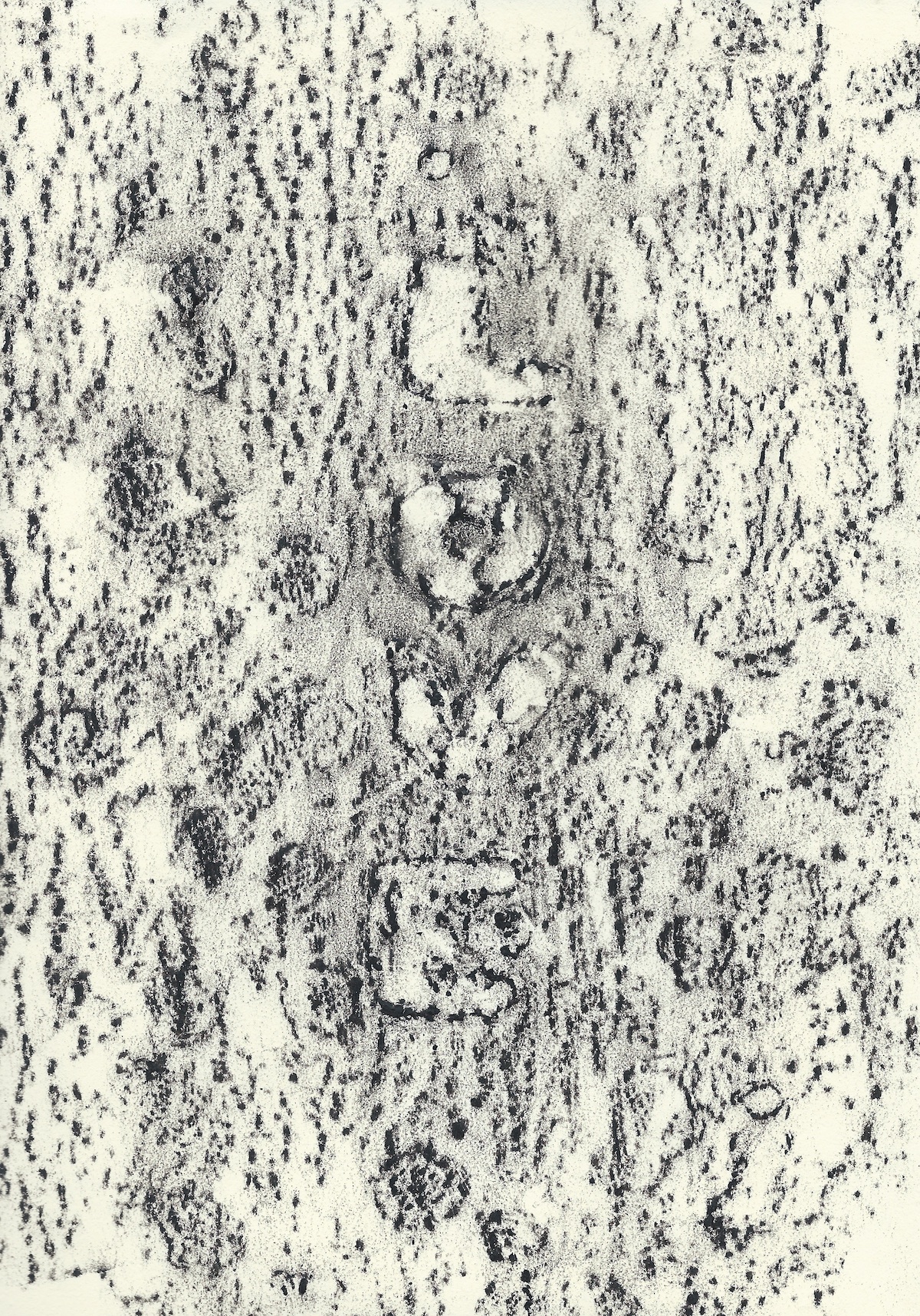 When I make a tree rubbing (set type, ride my mountain bike, make little dots) I drop into Mihály Csíkszentmihályi‘s concept of flow nearly immediately. There is nothing like this single-minded focused attention. And even though I am out of practice, it happened: I dropped into that fabulous state of focus while coaxing the nuances of the rubbing out of the paper.