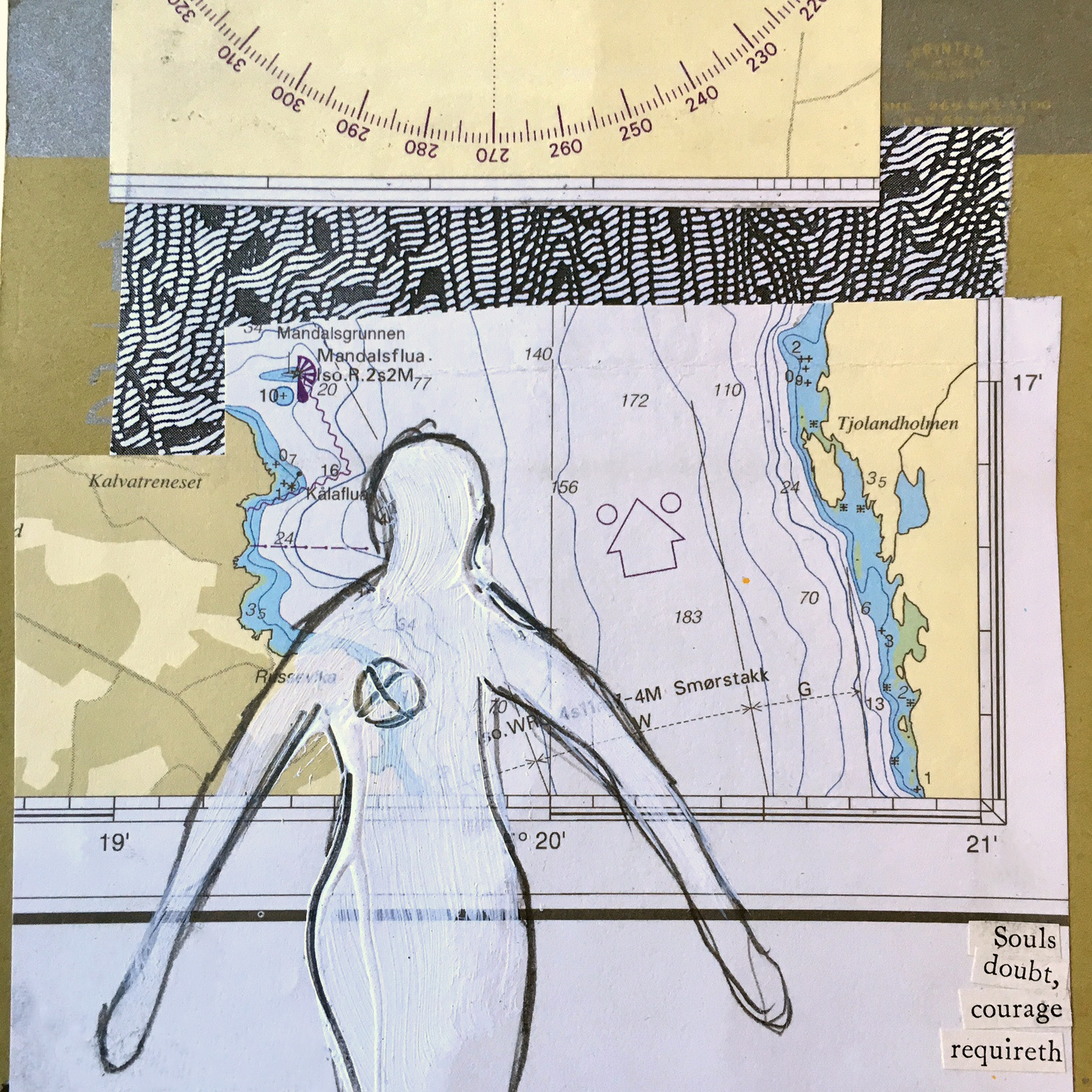 I have three body stencils that find their way into my little collages and my altered books. All three of them are based on figures found in magazines.