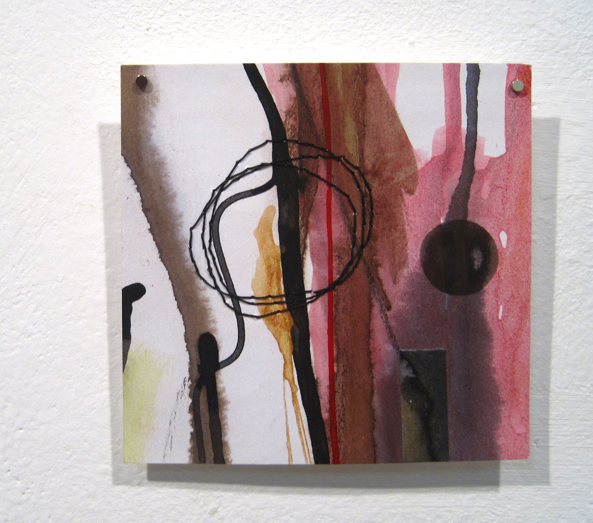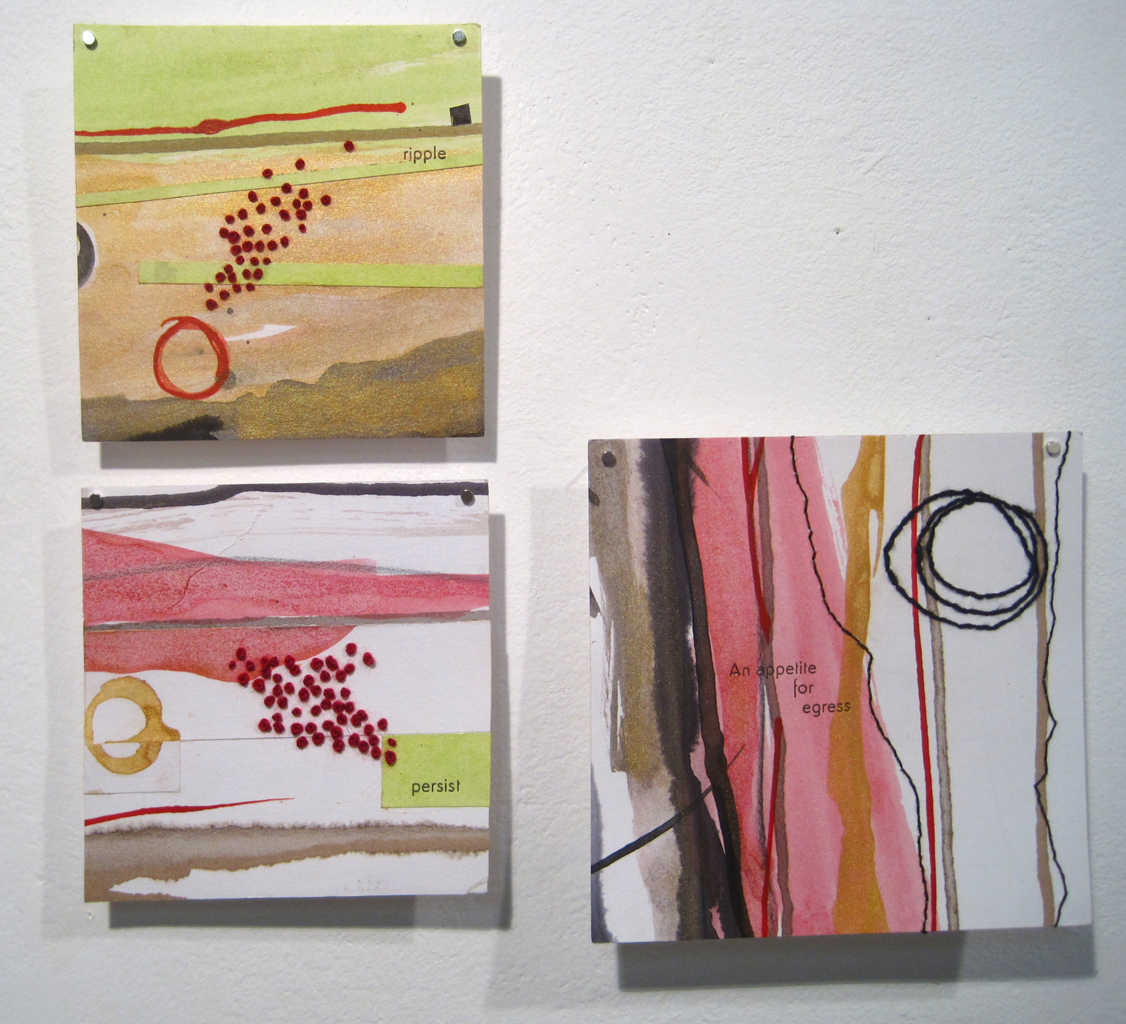 Next comes a series of small compositions, 5×5 inches, some with letterpress text, most with stitched additions like dots and pathways.