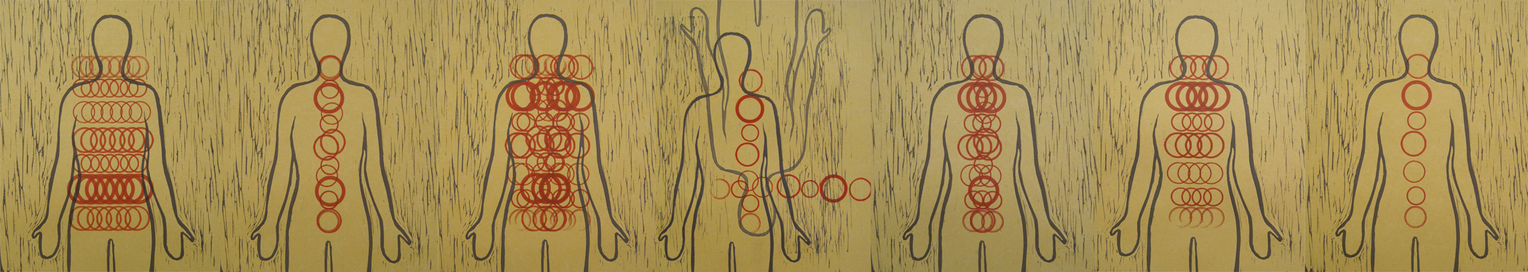 I stood in front of Fact and Fiction for what seemed like hours. When Doug and his daughter Cassidy eventually found me, said, it looks like work that you make. They were responding to the way Buck uses the outline form of the figure, which I use in many of my collages and daily drawings, as well as in some of my printmaking. For example the Solid Sound Seven: