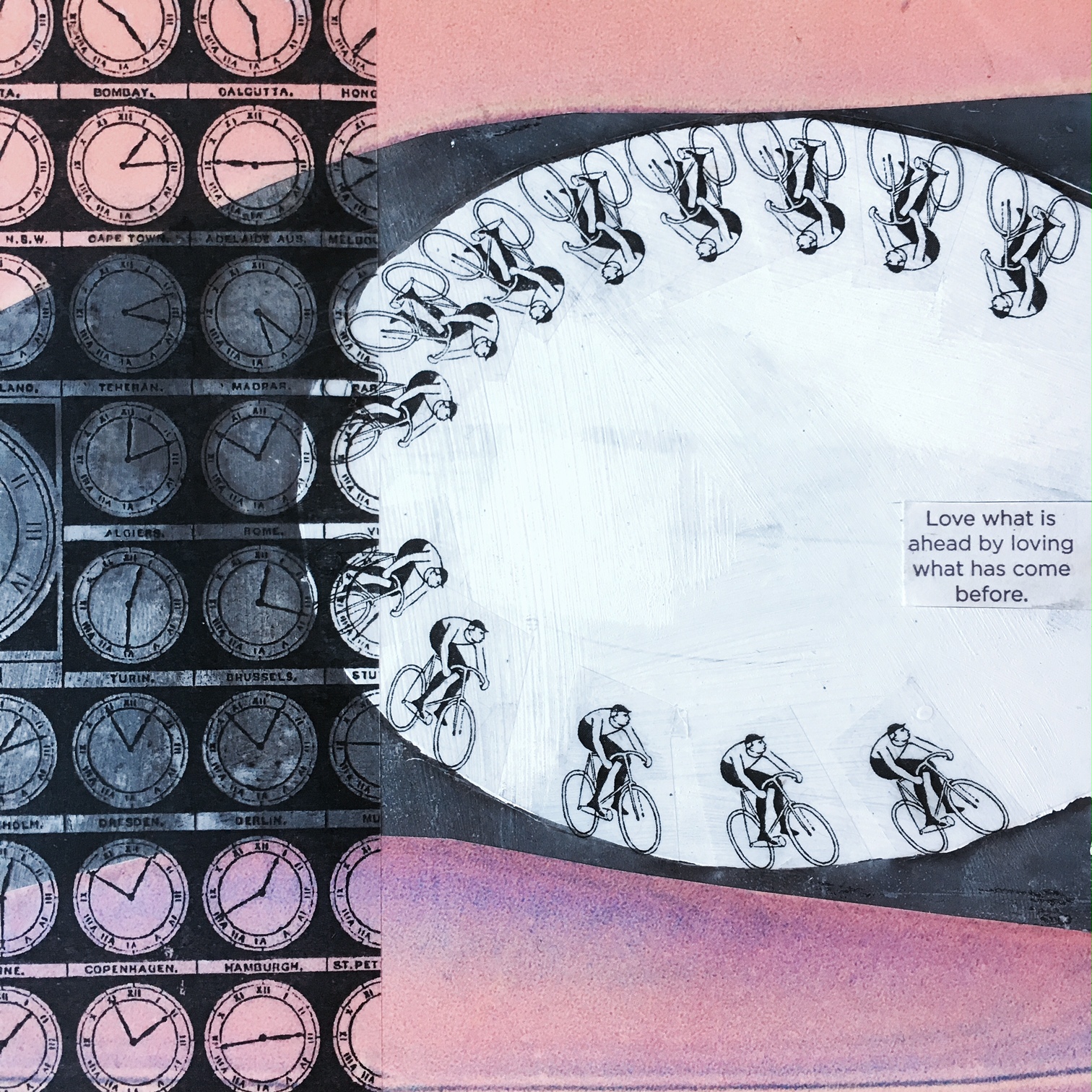 I am using her poem Possibilities to begin my workshop at the North Adams Makers’ Mill today. We will spend about 15 minutes writing in response to it and/or creating our own poems like it, followed by a few minutes of sharing what came up for us. Then onto a demoing gesso, matte medium and packing tape transfers. The remaining two hours we will play and work with the new techniques, while weaving them into some of our previous examples. If you read this in time and are local, come join us. We begin at 10 am. Here’s some more info about the class.